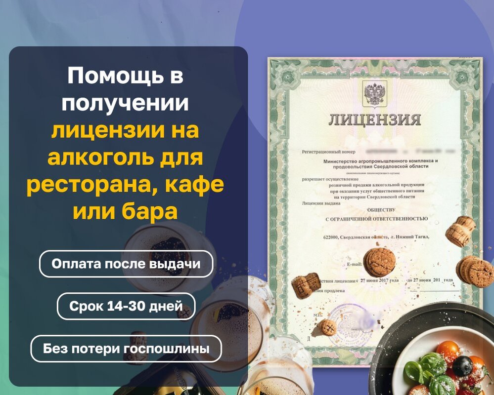 Преимущества: Компания быстро и эффективно оформила алкогольную лицензию для нашего ресторана. Отличный сервис и профессиональный подход. Рекомендую!